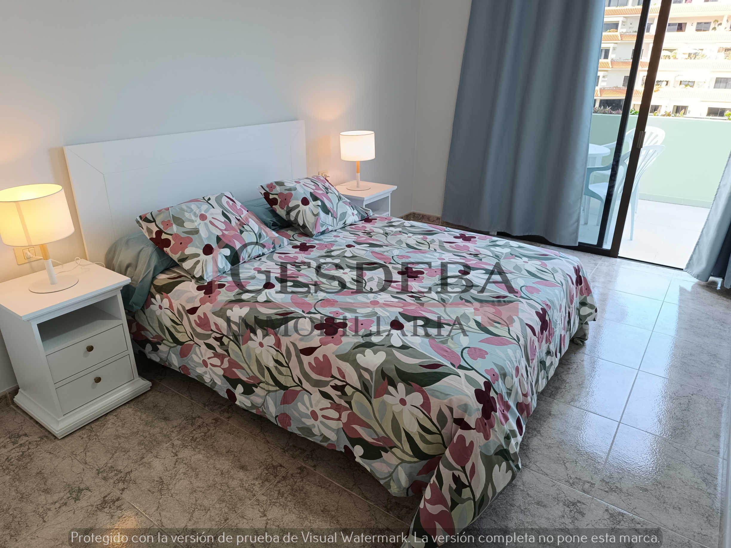 ALQUILER DE TEMPORADA. Acogedor apartamento con una ubicación inmejorable, junto a Playa Jardín. Cuenta con una cocina americana con barra, abierta al salón-comedor, un dormitorio con cama doble y armario empotrado, un baño con plato de ducha y una amplia terraza con agradables vistas. El complejo residencial ofrece piscina comunitaria. Máximo 2 personas. Gastos incluidos.